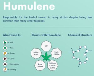 Entourage effect: When combined with other cannabis compounds, humulene can contribute to the “entourage effect,” which is the synergistic interaction that may enhance the overall therapeutic benefits.
